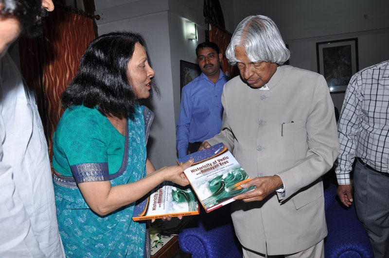 डॉ. ए पी जे अब्दुल कलाम के कर कमलों से पुस्तक, “वैदिक युग एवं रामायण काल की ऐतिहासिकता” का विमोचन 15 मार्च 2013 को हुआ।